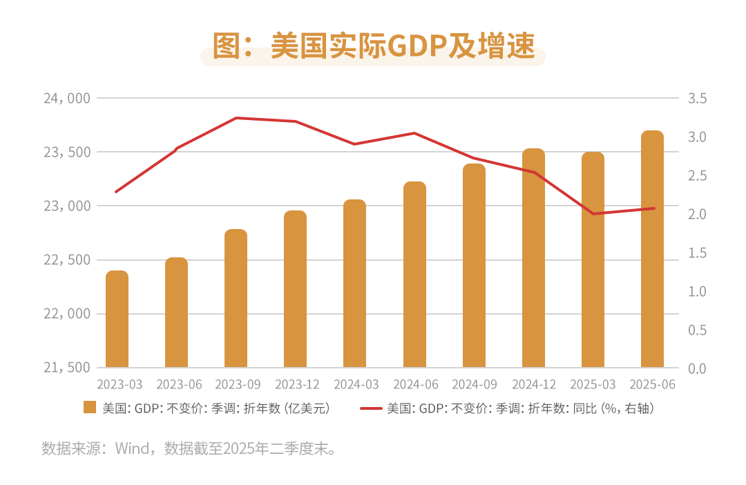 经济状况角度,美国实际GDP增速自2024年二季度至2025年一季度逐季放缓,2025年二季度实际GDP环比高于预期,主要系“抢进口”后净出口贡献转正叠加消费温和回升,但整体来看,上半年美国经济增长仍显著放缓。