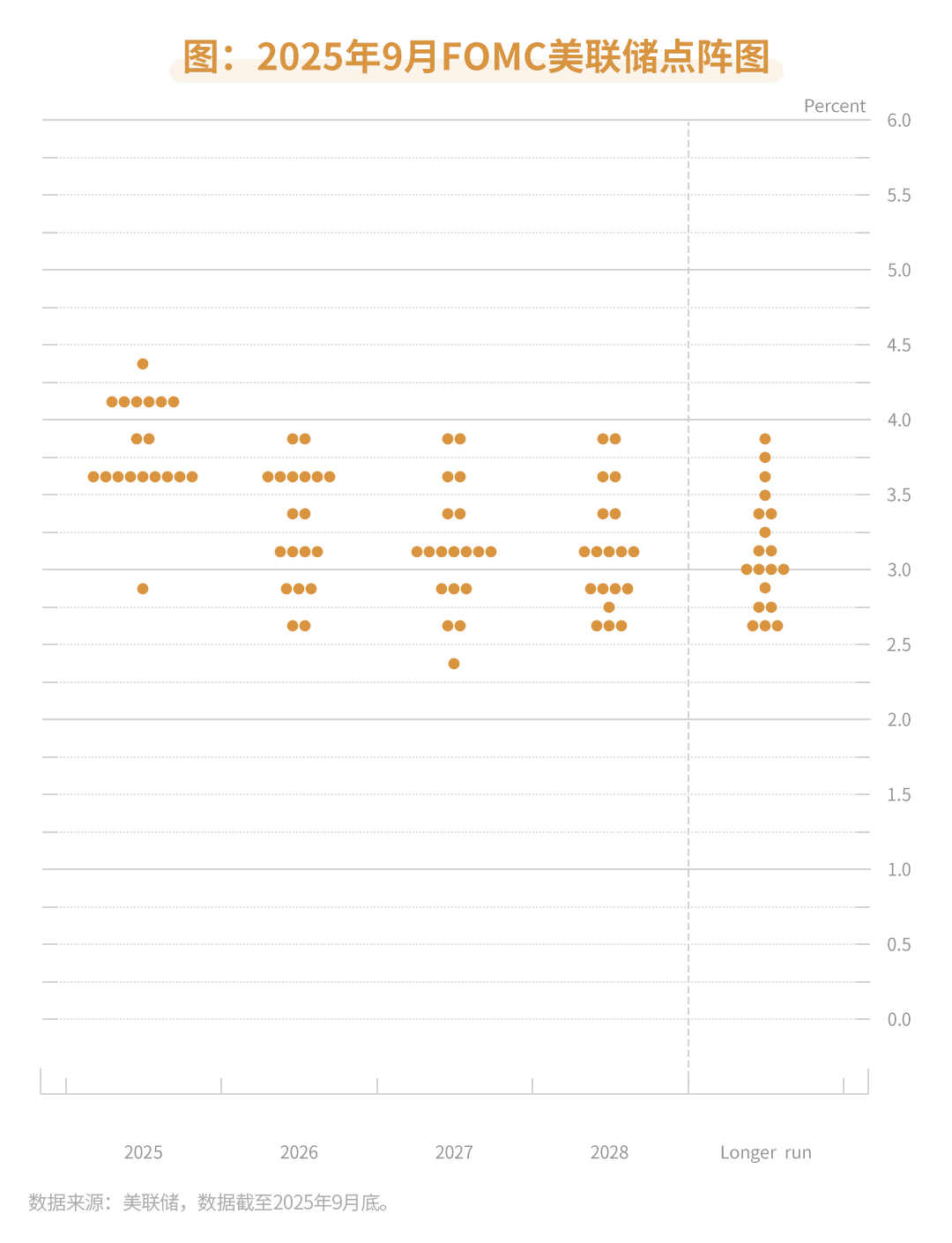 在大部分经济数据转弱的背景下,Jackson Hole会议上鲍威尔表示,劳动力市场的风险已经超过通胀风险,打开了短期降息空间。美联储于9月FOMC将基准利率下调25bp至4~4.25%,开启年内首次降息。从点阵图指引来看,当前至2026年美国或仍有降息空间。